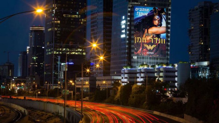 cimento pubblico nei confronti dell’attrice è stata inoltre l’esposizione di un enorme cartellone pubblicitario con la gigantografia dell’attrice nei panni dell’eroina sul grattacielo dell’Azrieli Center. Il cartellone recitava così, “Siamo orgogliosi di te, Gal Gadot, la nostra Wonder Woman.” I genitori della Gadot le hanno inviato la foto del cartellone, ma l’attrice ha pensato ad uno scherzo. Quando, però, più persone le hanno mandato la medesima immagine si è resa conto che il tributo a lei espresso è reale. All’inizio l’attrice è rimasta senza parole, ma poi ha commentato, “Ringrazio per tutto, nulla è dato per scontato, vorrei poter restituire tutta la gentilezza e l’amore ricevuto all’universo intero. Ringrazio tutti.”