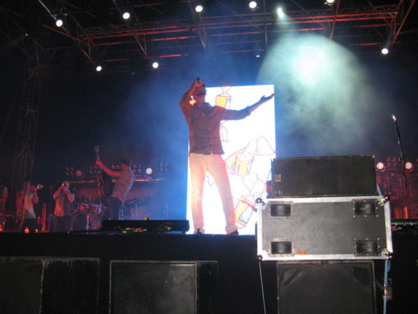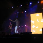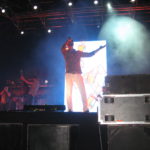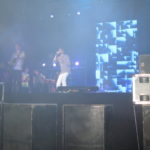 Carlo Coraggio si dimostra abile anche nel coinvolgere il pubblico, cercando di giocare il più possibile con esso e facendo anche salire sul palco una ragazza presente per il brano “Professorè”, eseguito proprio nella prima parte del concerto. Efficace anche lo scenario: nella particolare cornice della Villa Bellini, nel cuore del centro città, lo spiazzale che accoglie il palco sembra perfetto e su misura per concerti di questo genere, con l’auspicio che la stagione estiva di concerti (che proseguirà fino a settembre) possa essere la prima di tante altre. Il palco, dal canto suo, si presta perfettamente all’esibizione del cantante romano: sul maxi-schermo alle sue spalle si alternano, in base alla canzone, piccoli videoclip inerenti ai brani o, in certi momenti, delle riprese live del concerto, come ad esempio quando durante “Pianto Noisy” è la fotocamera interna del telefono di Carl Brave a trasmettere direttamente ciò che l’artista riprende mentre canta.