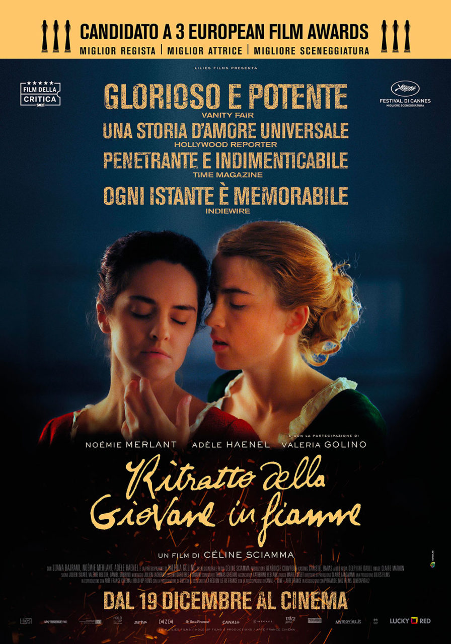 Ritratto della Giovane in Fiamme, racconta il mondo attraverso lo sguardo delle donne e ha vinto meritatamente il Prix du scénario al Festival di Cannes 2019, ha ottenuto 1 candidatura a Golden Globes, 3 candidature e vinto un premio a European Film Awards, 1 candidatura a Critics Choice Award, 1 candidatura a Spirit Awards. La regista, Céline Sciamma, dopo il bellissimo Tomboy del 2011 e il successivo Diamante Nero, si conferma una narratrice dotata di straordinario talento e sensibilità, che riesce attraverso storie declinate solo al femminile, a parlare un linguaggio totalmente universale.