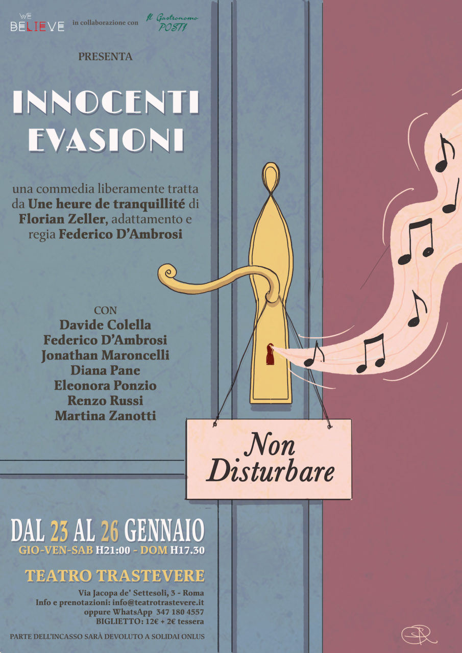 Arriva a Roma al Teatro Trastevere la commedia “Innocenti Evasioni”, liberamente tratta dalla pièce teatrale dal successo internazionale “Une heure de tranquillitè” del pluripremiato drammaturgo francese Florian Zeller. Dinamica e divertente anche nella trasposizione cinematografica “Tutti pazzi a casa mia” di Patrice Leconte.