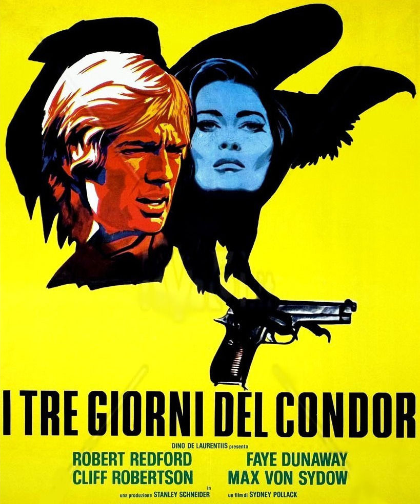I tre giorni del Condor (Three Days of the Condor) è un film del 1975 diretto da Sydney Pollack, adattamento dal romanzo I sei giorni del Condor di James Grady. Uno straordinario Robert Redford e un’affascinante Faye Dunaway, in un film considerato tra i migliori film del genere spionistico, sebbene possa essere ritenuto un film politico.