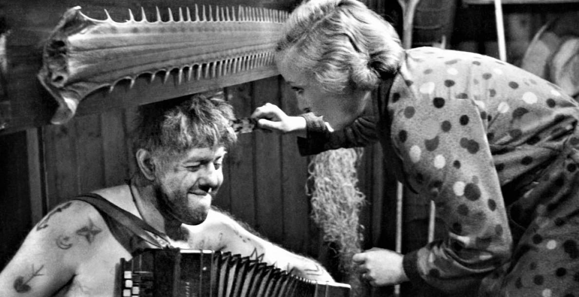 Il rapporto che ebbe Vigo con il soggetto originale de L’Atalante consente di farsi una idea della sua capacità di ‘manipolazione creativa’ di un materiale precinematografico assai banale e denso di ambigui luoghi comuni, per cavarne un film tutto giocato sulle atmosfere. Nel processo di trasformazione del soggetto originale in messa in scena cinematografica Vigo altera sensibilmente la natura della vicenda narrata e il carattere dei personaggi. Ma, quel che è più importante, riesce a fare delle atmosfere cinematografiche il vero ‘soggetto’ del film. Per ‘atmosfere cinematografiche’ intendo non solo gli ‘effetti’ stilistici o espressivi prodotti come il risultato di un certo modo di operare con la macchina del cinema. Piuttosto, intendo la capacità di far scaturire dalle cose stesse o da una vicenda appena abbozzata, dal tratteggio in punta di pennello dei personaggi, l’alone del senso che li tiene in vita, che tiene in vita il film. Dunque, la capacità che ha il cinema – con certi cineasti – di creare atmosfere attorno a fatti e materiali, una atmosfera concreta, palpabile, fatta di luci e di oggetti, di corpi e di personaggi umani e naturali. Mantenendo in apparenza intatto il filo conduttore della vicenda, Vigo ha trasformato radicalmente il senso del soggetto di Guinée, costruendo una storia che si regge sul bilanciamento della seduzione e dell’amore coniugale, e su una rara fusione tra la vita quotidiana, il lavoro e l’amore. Il gusto, l’esperienza e la sensibilità di Vigo si avvertono soprattutto nel tratteggio dei personaggi, nella manipolazione creativa dei corpi e dei luoghi, nel modo di riplasmare sotto l’intervento della macchina da presa i rapporti che legano gli uni agli altri. Rapporti delicati che si modificano impercettibilmente, giorno dopo giorno, durante lo scorrere lento della barca sui canali, durante l’alternanza di occupazioni giornaliere e pause della intimità, durante le tensioni tra l’amore e la curiosità per la vita immaginata in tutti i suoi aspetti. È così che prende corpo una visione complessa dell’amore e del piacere, il senso fisico della vita e del lavoro, la seduzione in tutti suoi aspetti e il richiamo alla saldezza delle scelte compiute.