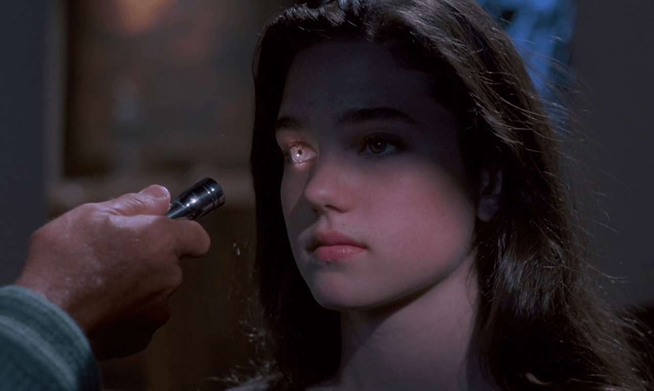 Nelle vicinanze del collegio si aggira da qualche settimana un assassino che uccide giovani fanciulle, e durante una crisi di sonnambulismo Jennifer assiste all’uccisione di una compagna. Nel bosco, Jennifer incontra una femmina scimpanzé, Inga, che la conduce al laboratorio del suo padrone, l’entomologo John Mc Gregor (Donald Pleasance) i cui studi aiutano la polizia a risolvere le indagini. Questi studia gli insetti e in particolar modo analizza le larve dei cadaveri in putrefazione per desumere l’epoca del decesso. L’entomologo e Jennifer hanno in comune la passione per gli insetti, testimoni di segreti e depositari di una memoria che sempre di più tende a cancellarsi nella mente delle persone. Mentre gli uomini rimuovono abitualmente i ricordi indesiderati, gli insetti sono lì a raffigurare la forma stessa del tempo, la sua durata ovverosia il suo scorrere. La loro vita è breve eppure sono nel film come delle figure filosofiche, in grado di serbare memoria addirittura sui fatti che riguardano gli umani. E, coerentemente, gli insetti sono intelligenti e collaborativi, come la lucciola che mostra a Jennifer la strada per scoprire un guanto lasciato dall’assassino. Si tratta, dunque, di figure che sono parte della personalità stessa della ragazza. La quale porta il guanto ritrovato al professore, che vi riscontra le tracce di una larva di mosca, il “gran sarcofago” solito nutrirsi unicamente di cadaveri umani. L’entomologo rivede in Jennifer i tratti e l’entusiasmo di una giovane collaboratrice con cui lavorò in passato – come una figlia per lui – che fu vittima di un serial killer.