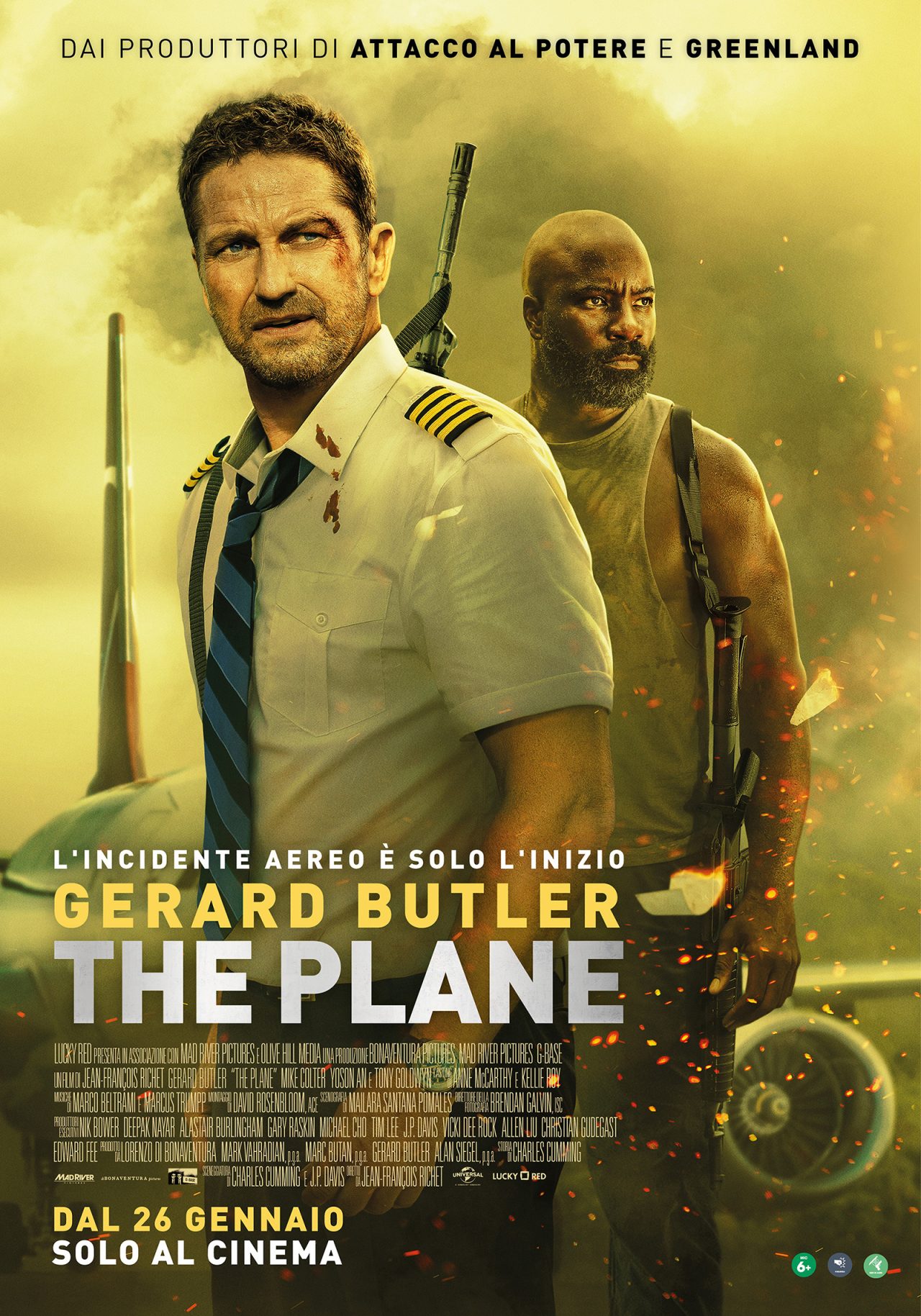 Gerard Butler torna al cinema nell’adrenalinico action movie The Plane, questa volta nei panni di un coraggioso pilota che per salvare i suoi passeggeri da una violenta tempesta, effettua un rischioso atterraggio d’emergenza su una remota isola delle Filippine. I superstiti dovranno però affrontare una nuova minaccia: degli spregiudicati guerriglieri indipendentisti che vivono in quelle terre. Il gruppo viene infatti rapito e sarà compito del comandante Brodie Torrance proteggere i sopravvissuti presi in ostaggio e portarli in salvo. Ad affiancarlo in questa missione impossibile, troverà un ex Marine (Mike Colter, il celebre ‘Luke Cage’ dell’Universo Marvel) in arresto che era a bordo dell’aereo scortato dall’FBI. A dirigerli, il regista francese Jean-François Richet, Premio César per il dittico con protagonista Vincent Cassel, Nemico pubblico N. 1 – L’istinto di morte e Nemico pubblico N. 1 – L’ora della fuga. Nel cast anche Daniella Pineda (Jurassic World – Il dominio), Yoson An (Mulan) e Tony Goldwyn (Divergent, Scandal).