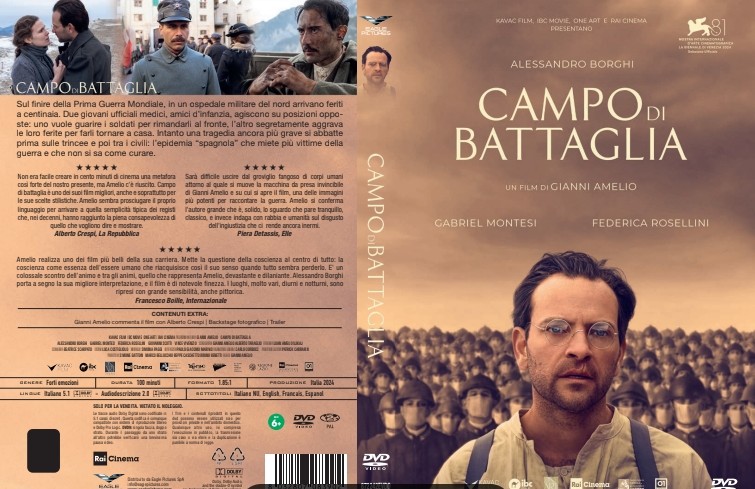 Dal 19 dicembre disponibile “CAMPO DI BATTAGLIA“, l’ultimo film di Gianni Amelio con protagonisti Alessandro Borghi e Gabriel Montesi, edito nei formati DVD e Blu-Ray arricchito da imperdibili extra tra cui il commento audio del regista e un backstage fotografico. Sul finire della Prima Guerra Mondiale, in un ospedale militare del nord arrivano feriti a centinaia. Due giovani ufficiali medici, amici d’infanzia, agiscono su posizioni opposte: uno vuole guarire i soldati per rimandarli al fronte, l’altro segretamente aggrava le loro ferite per farli tornare a casa. Intanto una tragedia ancora più grave si abbatte prima sulle trincee e poi tra i civili: l’epidemia “spagnola” che miete più vittime della guerra e che non si sa come curare.