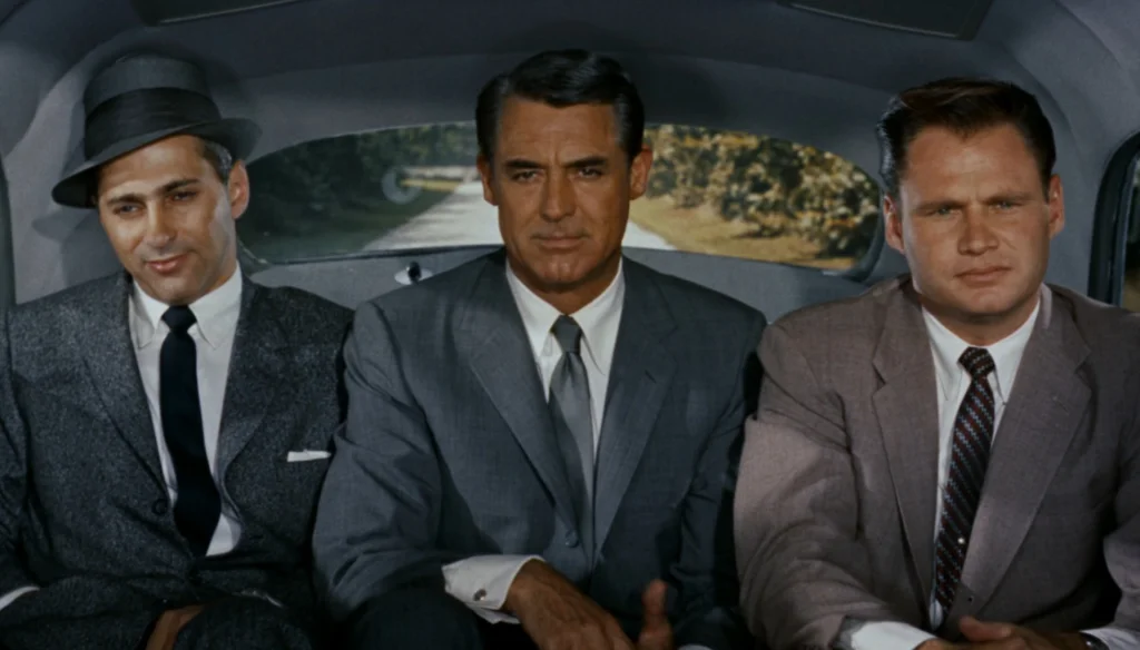 Intrigo internazionale (North by Northwest, 1959), ultima collaborazione tra Alfred Hitchcock e Cary Grant è, prima de Gli uccelli (1963), un’opera aperta e enigmatica, i cui echi, negli anni a venire, si lasceranno avvertire non soltanto nella cinematografia di spionaggio che vede ancora oggi come capostipite l’inossidabile James Bond, ma soprattutto nella composizione scenografica, dai tratti iper-reali, e nella disinvoltura narrativa, proprie del nuovo cinema hollywoodiano che seguirà. La singolarità del film è da leggere a più livelli. Anzitutto, come convenivano il regista e Truffaut nel loro celebre libro-intervista, questo film è la sintesi dell’Hitchcock americano, un vero e proprio film summa (anche) della collaborazione tra due uomini di cinema ritrovatisi ancora una volta fianco a fianco per realizzare un grande film e portarsi verso una libertà creativa fatta di vette allegoriche e di ironia colma di clamorosi sottintesi.