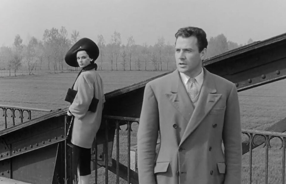 Il ferrarese è anche autore del soggetto di Cronaca di un amore – influenzato dalla corrente hard-boiled statunitense – che rivela tra gli spunti il caso giudiziario della Contessa Maria Pia Bellentani la quale, nel 1949, assassinò l’amante Carlo Sacchi. La sceneggiatura viene scritta dallo stesso Antonioni con Daniele D’Anza, Silvio Giovannetti, Francesco Maselli e Piero Tellini, per un lungometrraggio che nel sondare le coscienze e i conflitti interiori, adatta con stile personale una struttura evocativa di elementi del film noir. Vi si ritrova un’esplorazione esistenziale che non ha bisogno di rispettare i canoni del neorealismo per avvicinare le inquietudini di Paola e Guido; lei riscopre la passione per il suo compagno di collegio in seguito alla lettera di un’amica che la mette in guarda circa un detective intento a indagare sul suo passato. Proprio l’investigazione re-innesca quella tentazione omicida vista (in primis da Paola) come l’estrema via di liberazione. Ma l’epilogo registrerà la morte accidentale dello stesso marito, e, nonostante la sopraggiunta e sospirata libertà, una condizione di vuoto vertiginoso renderà impossibile per gli amanti continuare la relazione. Soprattutto in Guido emerge la disperata percezione dell’abisso umano e morale, conseguenza di un innamoramento che lo ha portato sulla soglia dell’omicidio. Mentre in Ossessione (1943) di Visconti, altro esordio d’autore con cui si è fatto spesso il paragone per la trama che riflette similmente quella di Un postino suona sempre due volte, il crimine veniva portato a termine compiutamente, in Antonioni l’omicidio, resosi ineffabilmente non più necessario, lascia il posto a una colpa e a un disorientamento che turba gli amanti, anime che si ritrovano spossessate, esauste e segnate dallo sconforto dell’alienazione vissuta. Per due volte il caso si inserisce nella storia di Paola e Guido eliminando dalla scena la persona che impediva la loro unione, dunque un gesto mancato (il delitto ideato ma non portato fino in fondo) si traduce nondimeno paradossalmente in una strada di morte; mentre la colpa, torturando interiormente, non lascia agli amanti la serenità per poter difendere e vivere il desiderio che, quando l’ingegnere era ancora in vita, si alimentava evidentemente di un fascino “proibito”, di una distanza a cui porre insistentemente fine e di una seduzione che in Cronaca di un amore reca il primo di una galleria di personaggi soggiogati fino al degrado che Michelangelo Antonioni proporrà con i film che seguiranno.