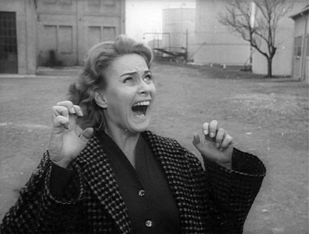 Il contesto sociale è riflesso dalla crisi emotiva del personaggio, e attraverso Aldo, nel suo disagio e nella sua capacità di affrontare il cambiamento, si consuma la tragedia de Il grido, l’estraneità al mondo che sta attraversando, come quando l’inquadratura coglie la sua figura fuori da una finestra nel momento in cui Aldo rivede Irma con il bambino avuto con un altro uomo nel momento in cui, fallita la sua ricerca di un nuovo inizio altrove, ha fatto ritorno nel paese da cui è partito. Ma il vuoto che lo circonda, il deserto dei paesaggi, la fabbrica adesso disabitata perché è in corso una dimostrazione popolare, non fanno che ribadire come non ci sia un posto per lui e per i suoi sentimenti. Raggiunge la torre dello zuccherificio che, minacciosa, si erge come il luogo grazie a cui sarà più facile togliersi la vita, inseguito a distanza dalla sola Irma che lancerà il grido destinato a risuonare come un segno hooperiano in mezzo al nulla. Un salto nel vuoto espressione di un pessimismo senza scampo, che in Antonioni significa però attenzione per i vinti, per il disagio mentale, per i sentimenti invisibili di cui nel film si dà espressione ad esempio con alcune digressioni narrative (l’incontro di Rosina con la comitiva di matti “inoffensivi”, o gli atteggiamenti del padre di Virginia).